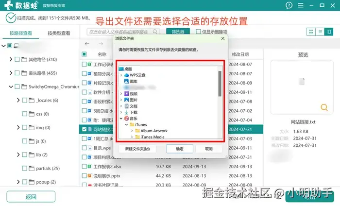 第3步: 在小弹窗中选择文件合适的存储位置,注意不要存回U盘上。