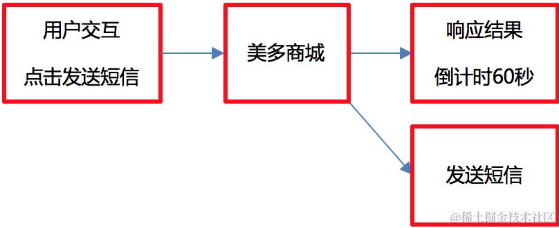 - 由美多商城生成发送短信消息,缓存到消息队列中,消费者读取消息队列中的发送短信消息并执行。