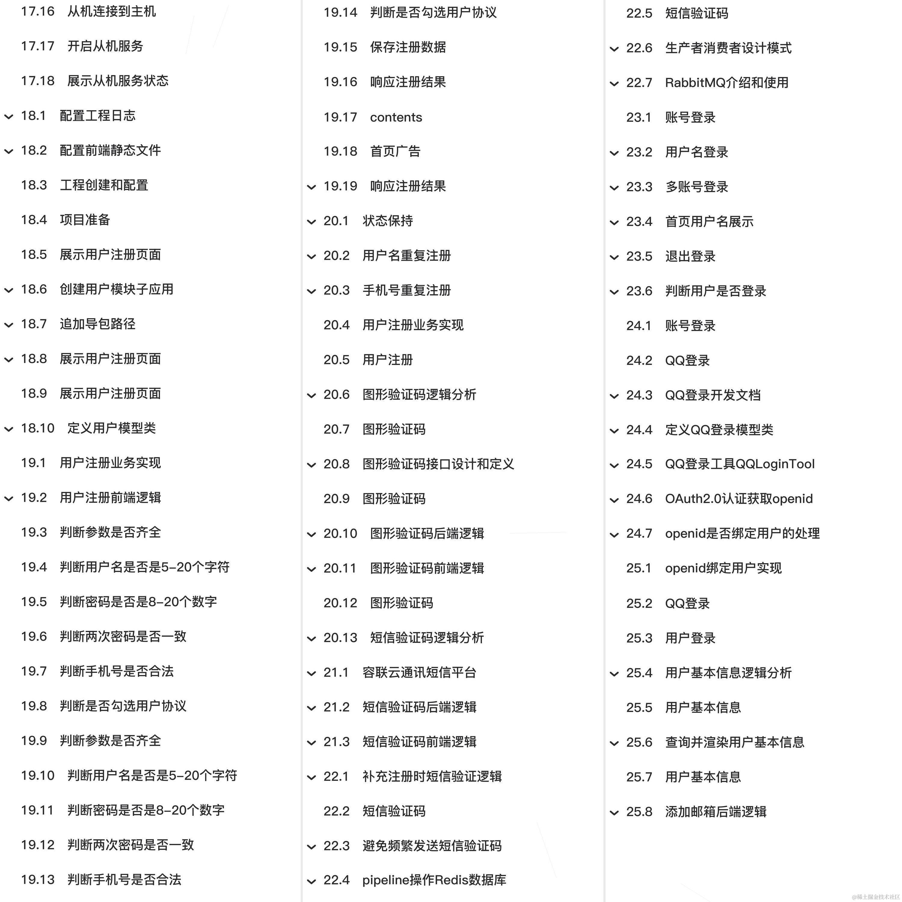 教程总体简介:收货地址、省市区三级联动、新增地址前后端逻辑、修改地址前后端逻辑、删除地址前后端逻辑、设置默认地址、修改地址标题、修改密码、用户中心、商品数据库表设计、SPU和SKU、首页广告数据库表分析、商品信息数据库表分析、准备商品数据、容器化方案Docker、首页广告、展示首页商品频道分类、自定义Django文件存储类、商品列表页分析、商品列表页、列表页面包屑导航、列表页分页和排序、商品搜索、Haystack扩展建立索引、渲染商品搜索结果、商品详情页分析和准备、展示详情页数据、商品详情页、统计分类商品访问量、设计浏览记录存储方案、保存和查询浏览记录、购物车管理、添加购物车、展示购物车、欢迎来到美多商城!、项目需求分析、项目架构设计、项目介绍、创建工程、配置开发环境、配置Jinja2模板引擎、配置MySQL数据库、配置Redis数据库、修改购物车、合并购物车、展示商品页面简单购物车、创建订单数据库表、保存订单基本信息和订单商品信息、使用事务保存订单数据、提交订单、使用乐观锁并发下单、订单、支付宝介绍、对接支付宝系统、订单支付功能、保存订单支付结果、页面静态化、首页广告页面静态化、商品详情页面静态化、从机端口号、关闭日志、从机唯一编号、开启日志、主机唯一编号、二进制日志文件、1. 收集主机原有数据、2. 从机复制主机原有数据、登录到主机、创建从机账号、刷新权限、登录到从机、从机连接到主机、开启从机服务、展示从机服务状态、配置工程日志、配置前端静态文件、工程创建和配置、项目准备、展示用户注册页面、创建用户模块子应用、追加导包路径、定义用户模型类、用户注册业务实现、用户注册前端逻辑、判断参数是否齐全、判断用户名是否是5-20个字符、判断密码是否是8-20个数字、判断两次密码是否一致