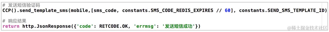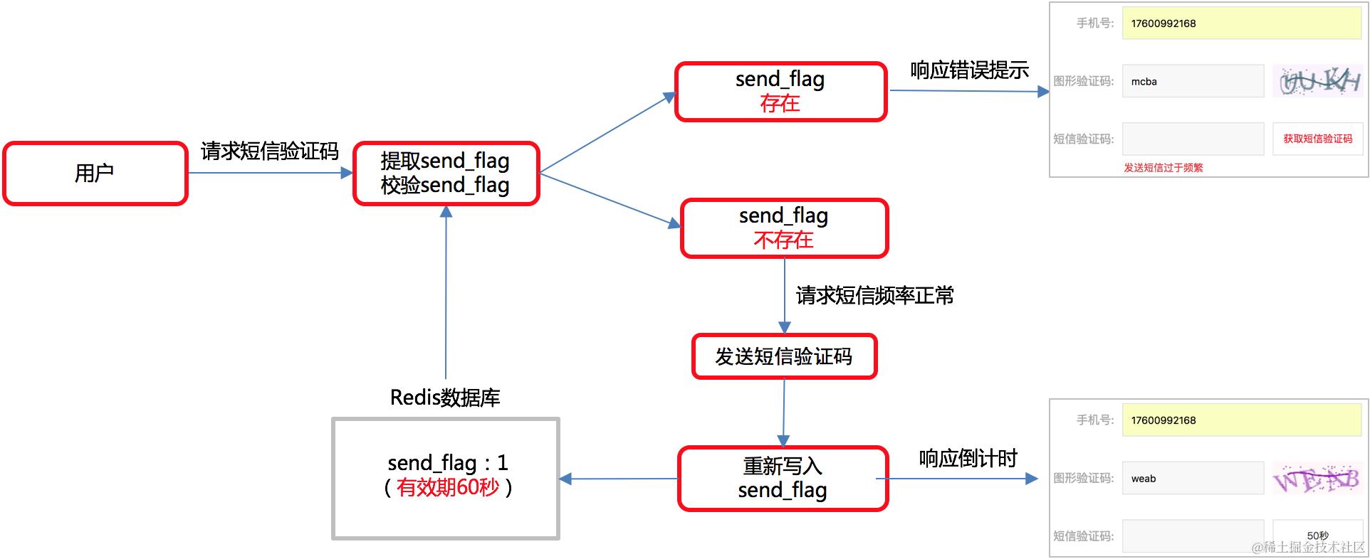 在后端也要限制用户请求短信验证码的频率。60秒内只允许一次请求短信验证码。