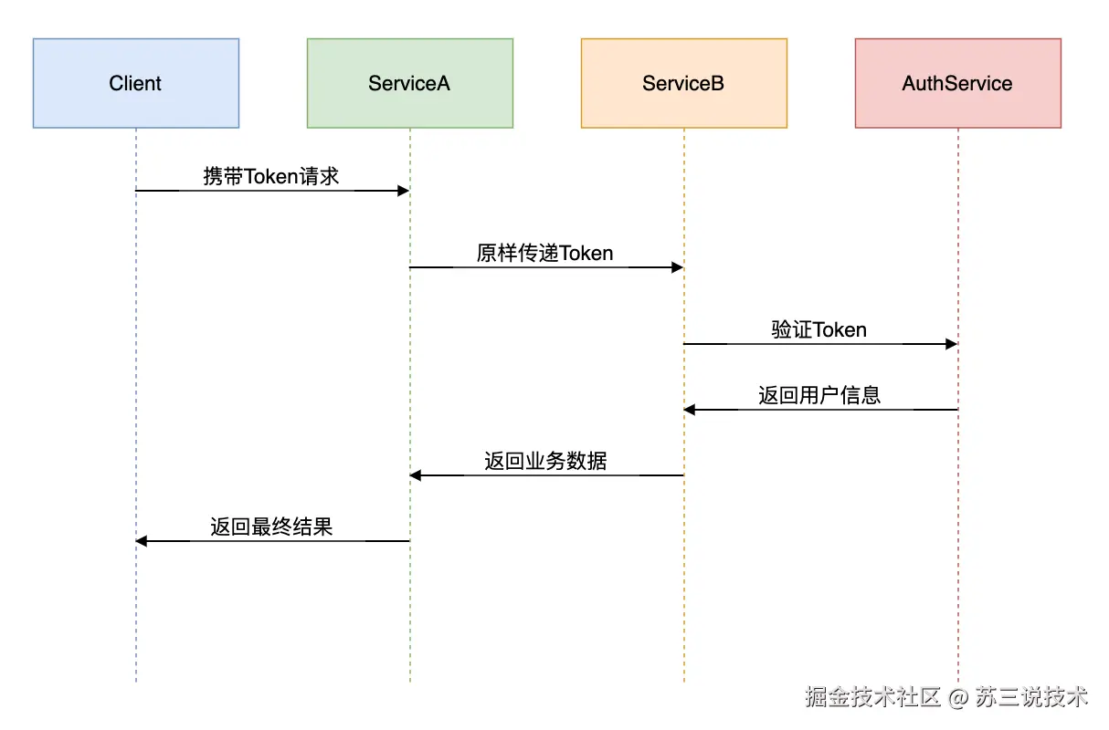核心问题:服务A调用服务B时Token如何传递