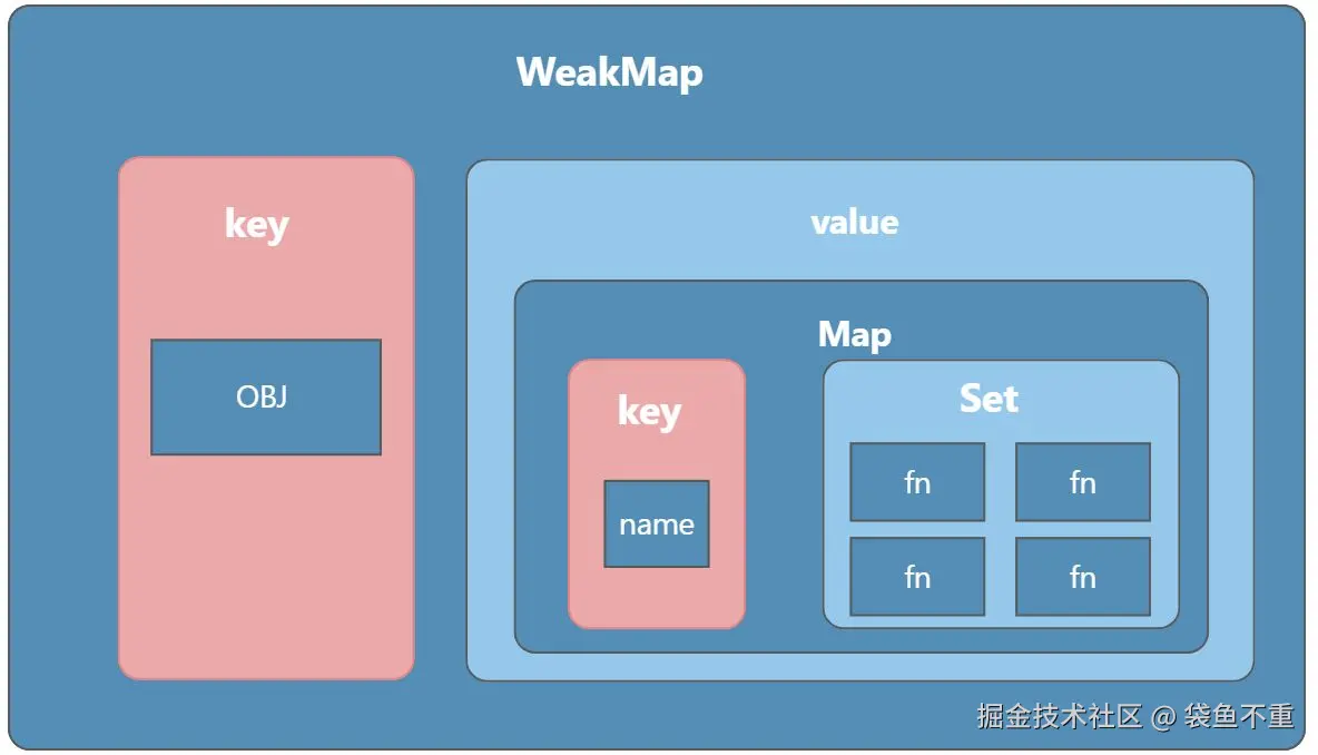 至此,指定对象的指定属性对应的 fn 已经被成功的保存到了 WeakMap 中。