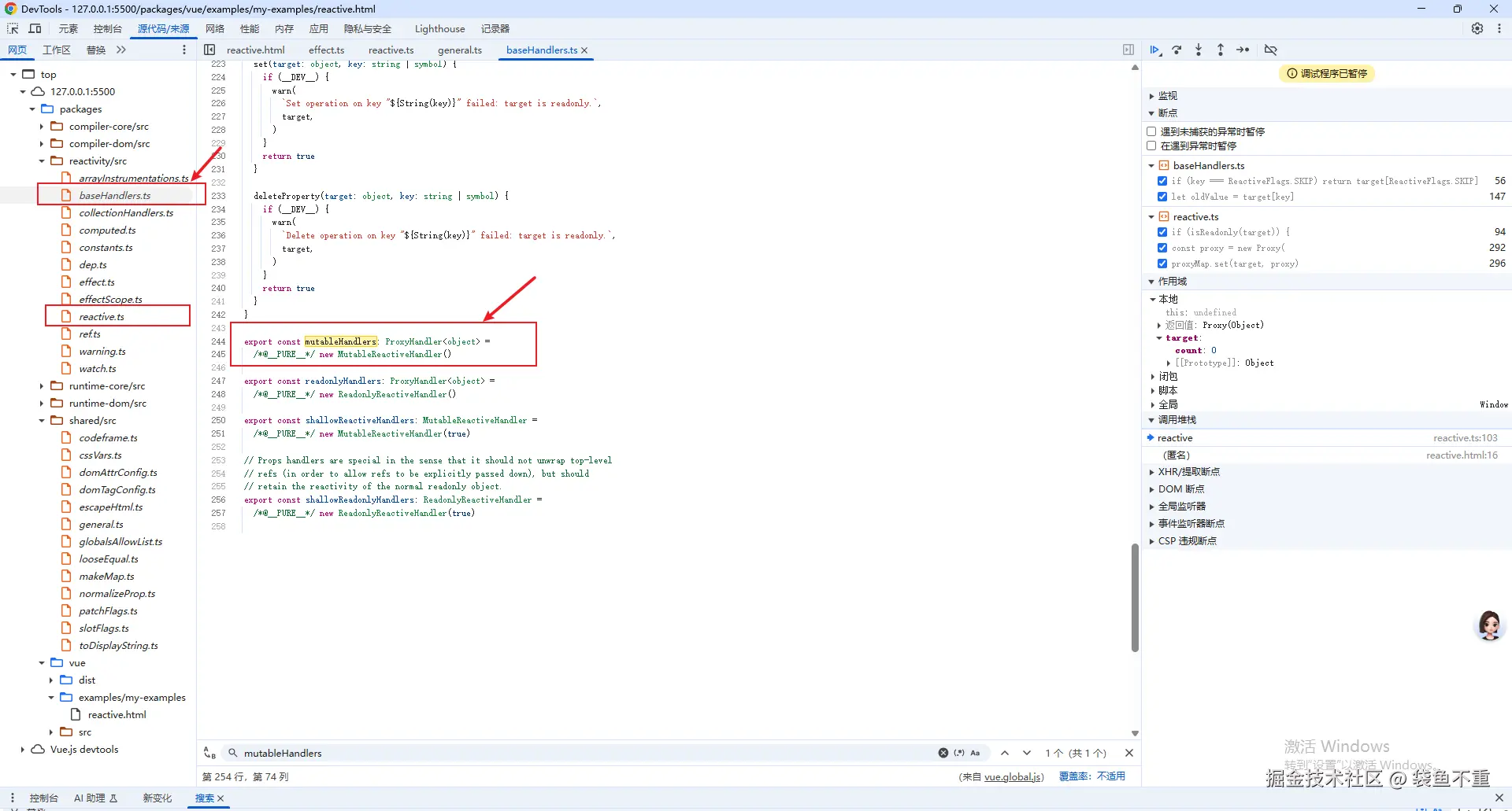 - mutableHandlers 位置:packages/reactivity/src/baseHandlers.ts