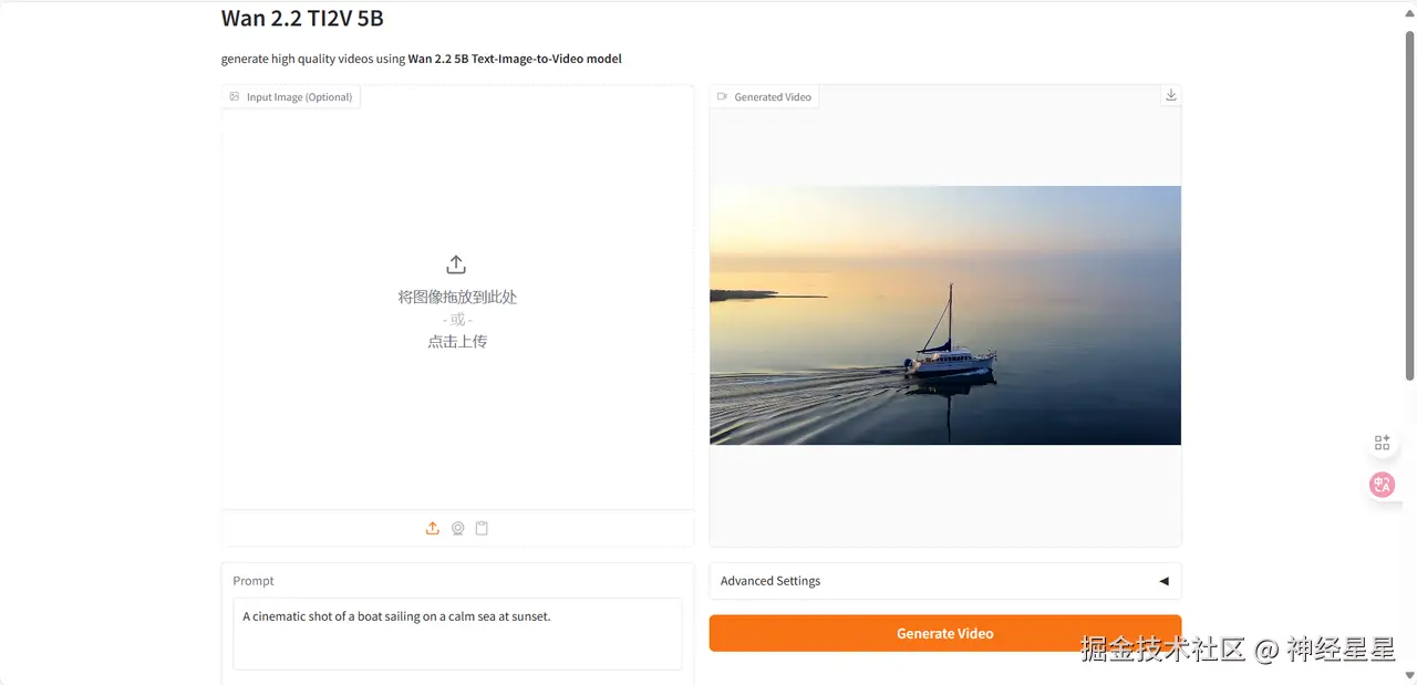 进入 Demo 页面后,上传图片并输入 Prompt,点击「Generate Video」。