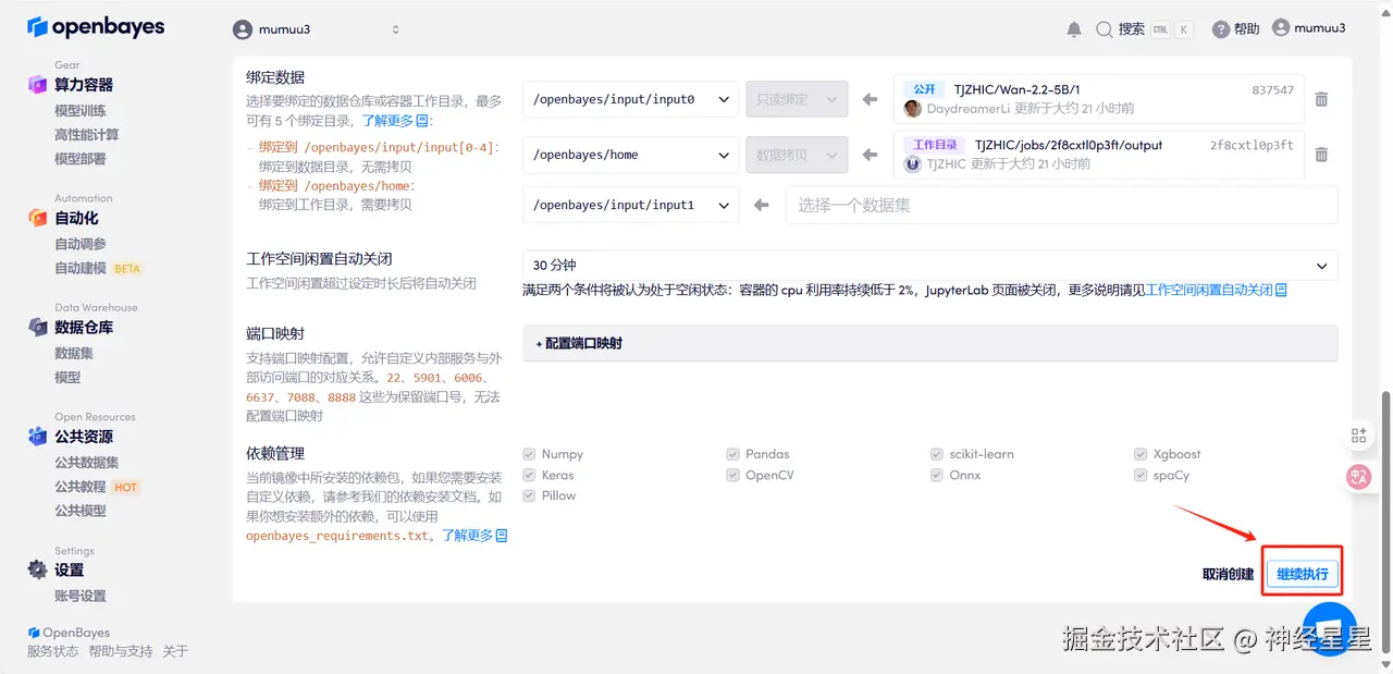 - 选择「NVIDIA RTX A6000 48GB」以及「PyTorch」镜像,按照需求选择「按量付费」或「包日/周/月」,点击「继续执行」。新用户使用下方邀请链接注册,可获得 4 小时 RTX 4090 + 5 小时 CPU 的免费时长!