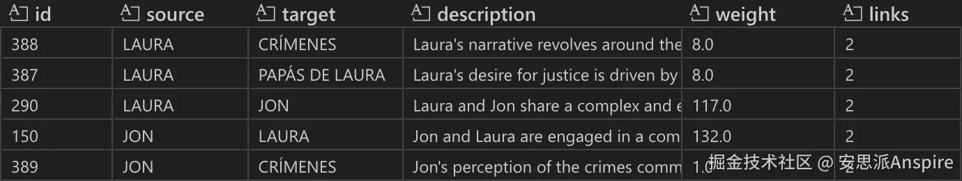 每个图边(关系)都有一个属性,表明它来自哪些文本单元。这一属性使得追踪提取实体的关系与其被检测到的文本单元成为可能。