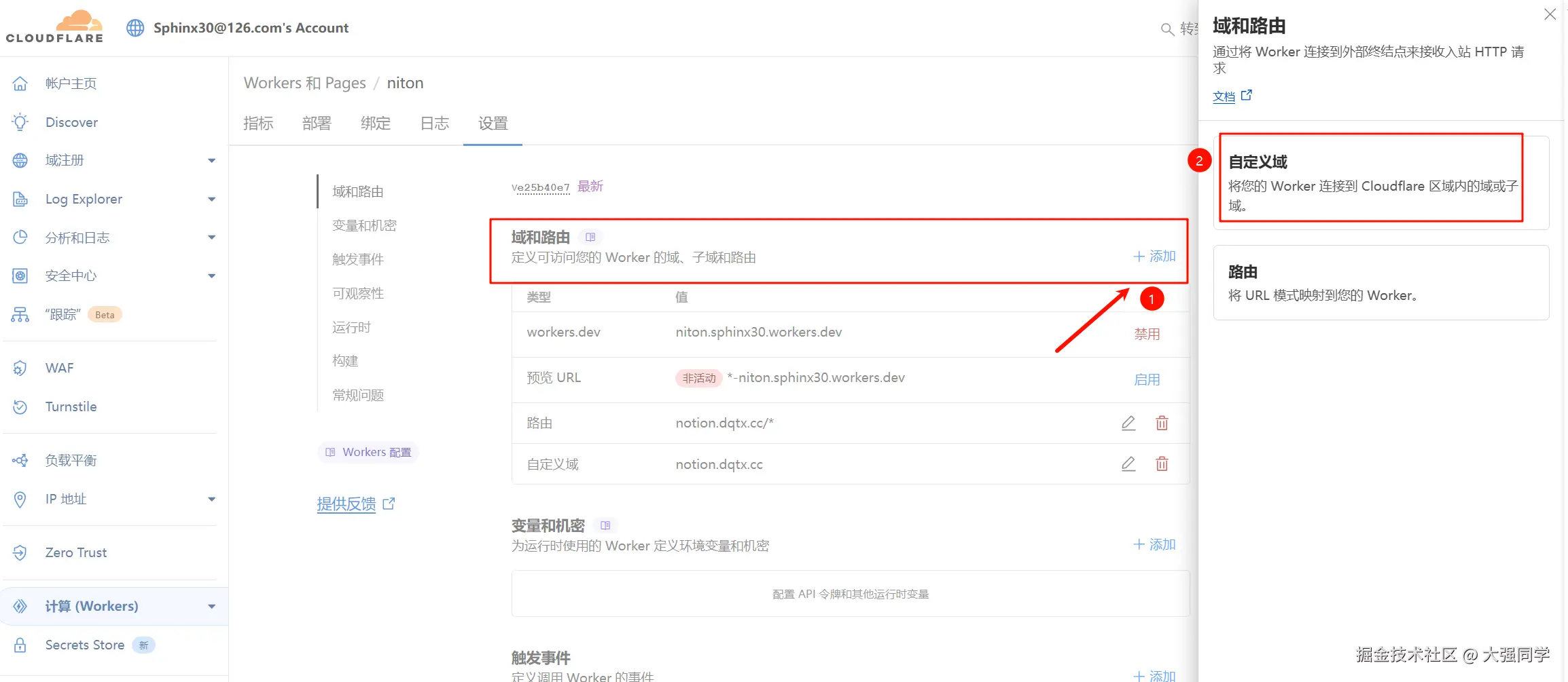 填入域名,注意网址后面加 /*Worker 就是那个贴代码后部署的名称