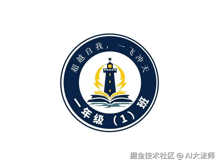 30、这是一年级(1)班的班徽,包含灯塔、书本、火焰、文字“超越自我,一飞冲天”“一年级(1)班”元素。灯塔象征指引方向,寓意班级有明确目标;书本代表知识学习;火焰象征热情与动力;文字传递班级追求自我超越、积极向上的精神 。