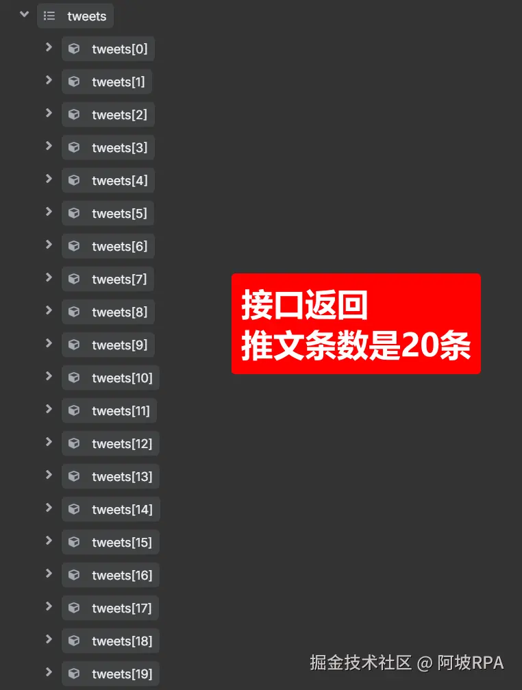 接口返回的推文列表是最近20条数据,很可能包含非当天发表的最新内容: