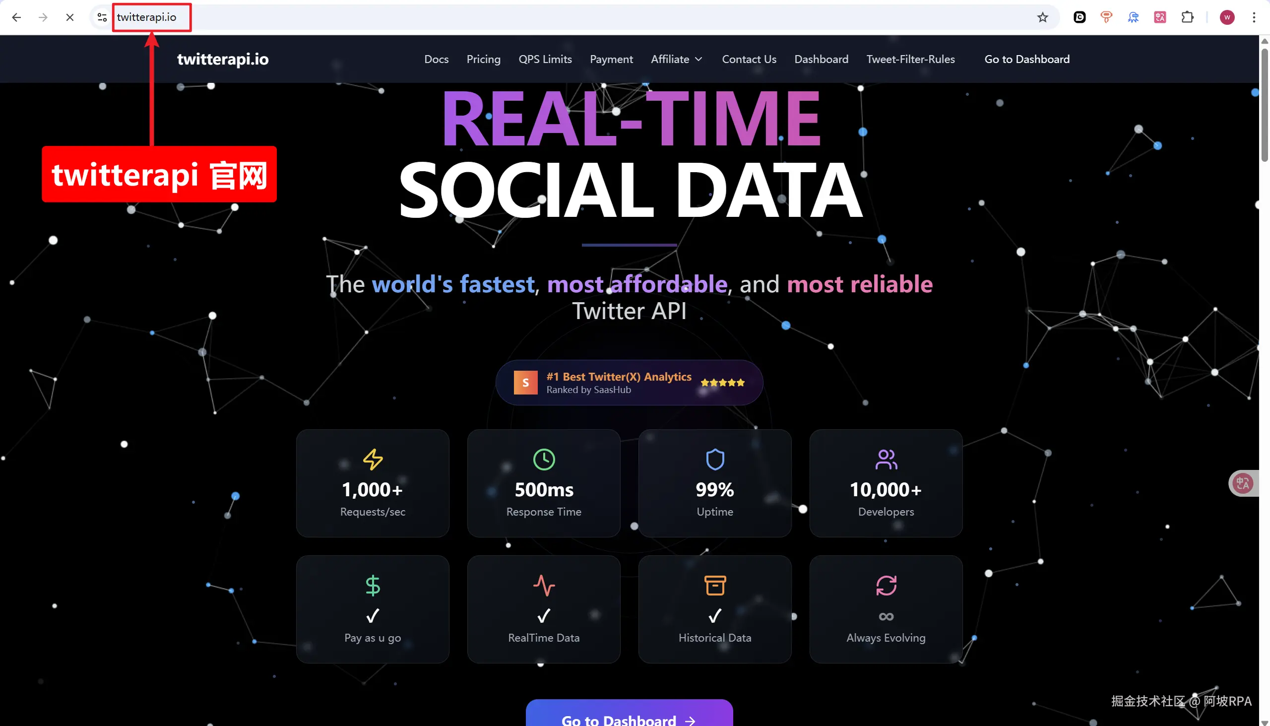 袋鼠帝大佬(推荐关注这位大佬的公众号:袋鼠帝AI客栈)写过一篇文章,是用 n8n 监控推特(X)热点的工作流,提到了还有一个第三方平台提供了获取 X 平台的相关数据的接口。