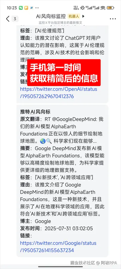 今天手把手教你用八爪鱼RPA,搭建一个监控X平台的「AI情报官」,7x24小时紧盯AI前沿动态,实时以飞书消息的形式推送给你,彻底解放你的注意力。