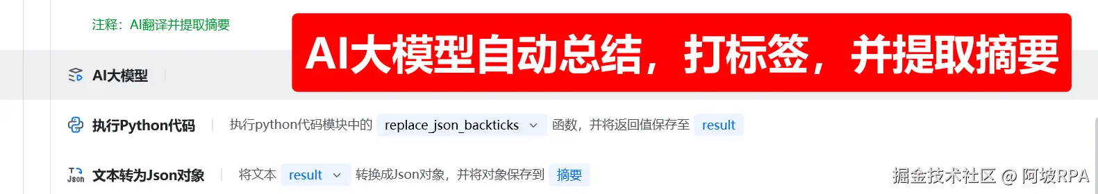 AI 提示词大家可以自己定义,也可以用我的提示词,这里就不在粘贴了,大家需要的话可以关注公众号:阿坡RPA,后台回复关键词风向标