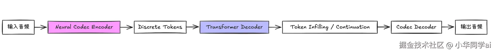 - Transformer 结构:高效处理大规模音频 token