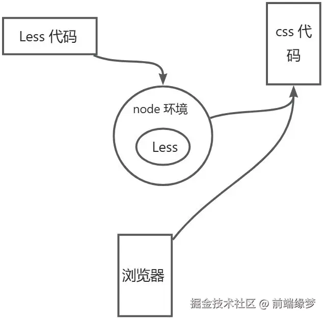 Less 代码虽好,但无法被浏览器识别,因此需要一个工具将其转换为 CSS 代码,由于 node 环境具有读写文件的能力,于是在 node 环境中可以轻松的完成文件转换。