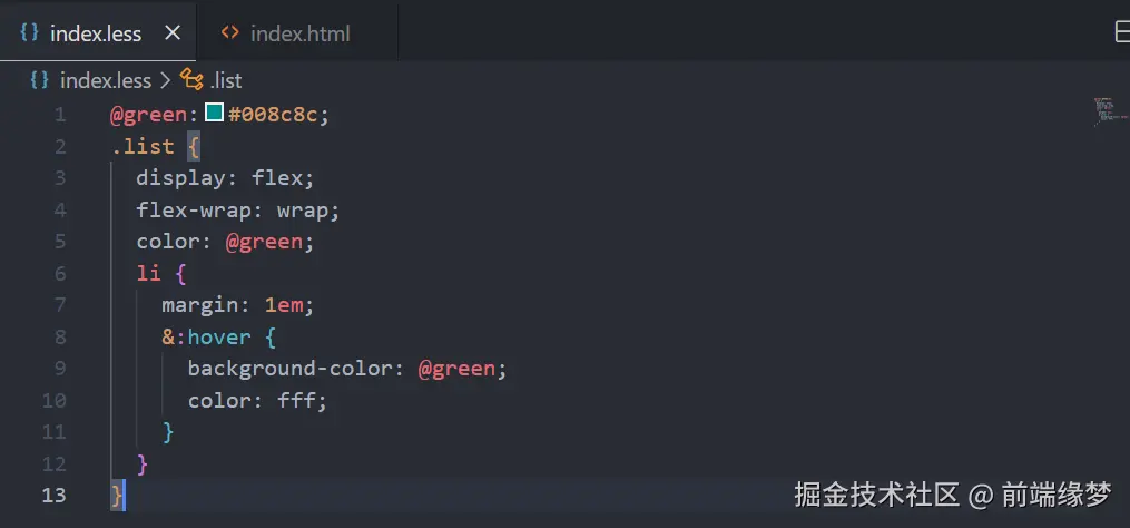 - 将 index.less 编译成为 index.css
