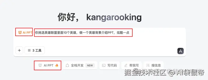 进入z.ai,在对话框下面选中AI PPT(进入PPT模式)