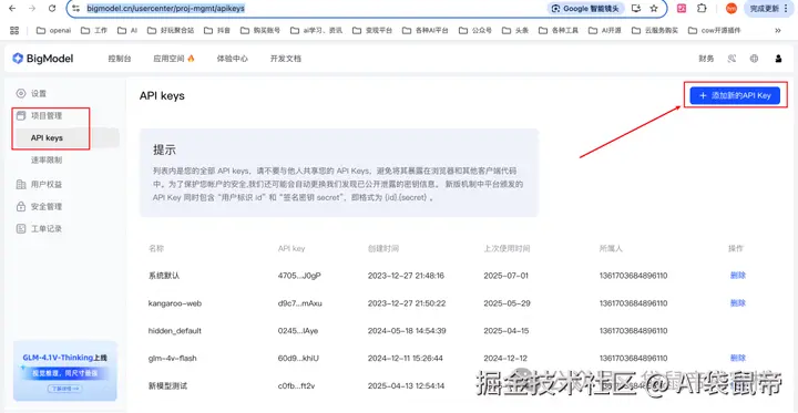 然后去智谱开放平台(bigmodel.cn)获取apikey