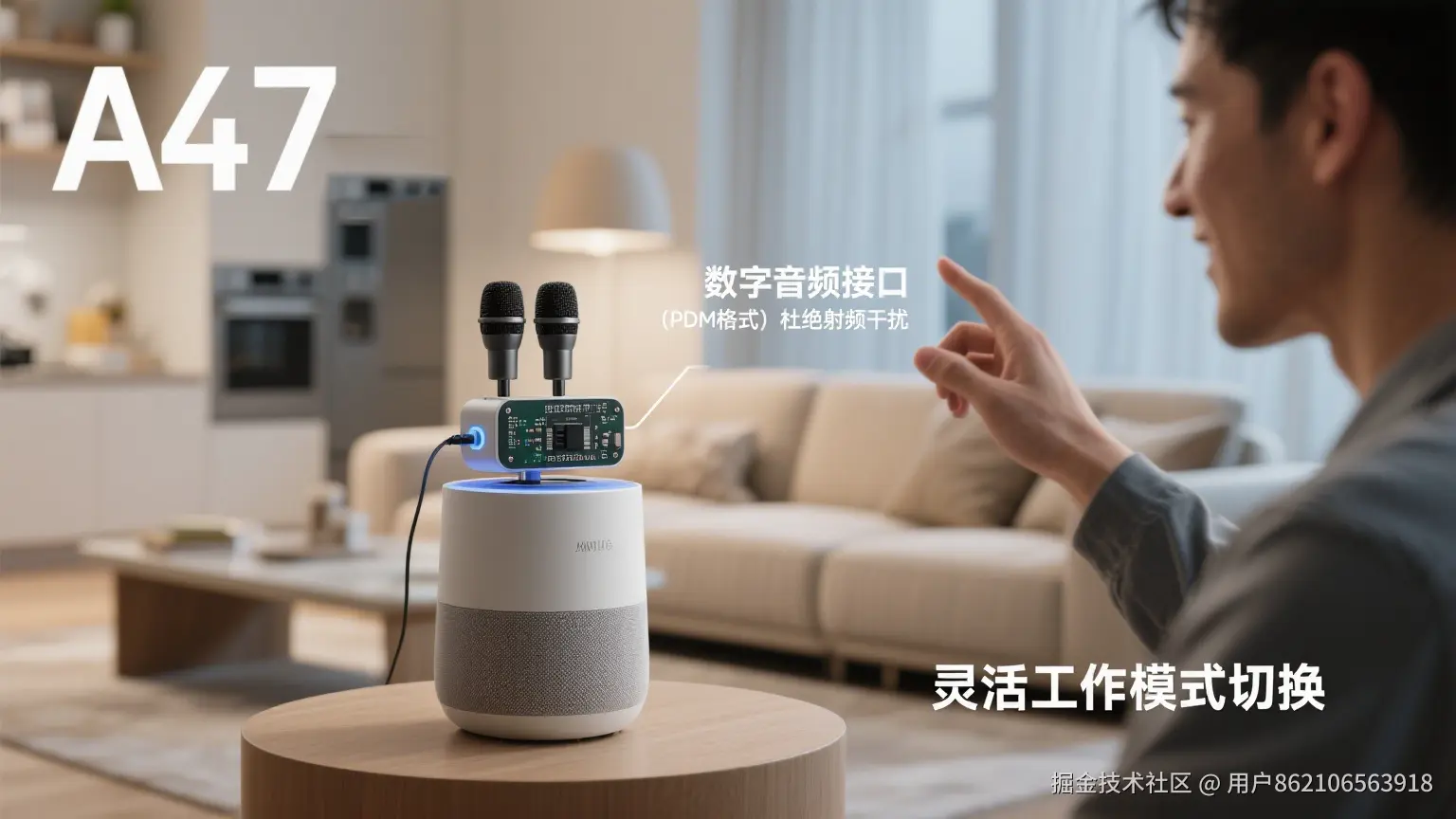 A47 语音处理模块在远距离(3 - 10 米)语音交互场景中,凭借专业声学处理 DSP 芯片及定制化算法,展现出强劲性能,为远距离语音拾取与处理提供可靠解决方案。