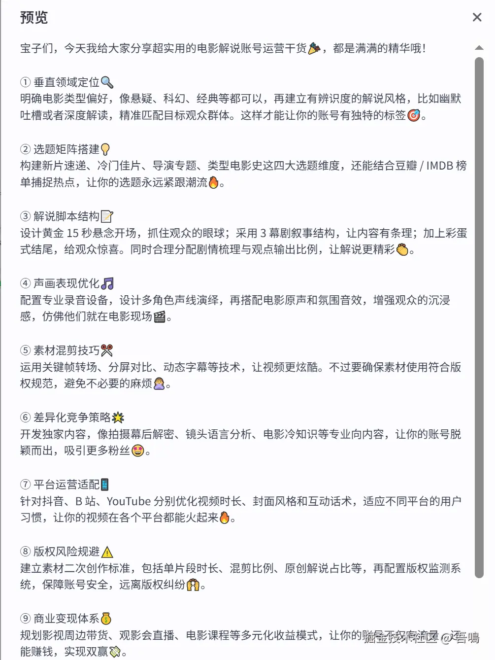 - topic:自媒体赛道,比如电影解说、小儿教育等