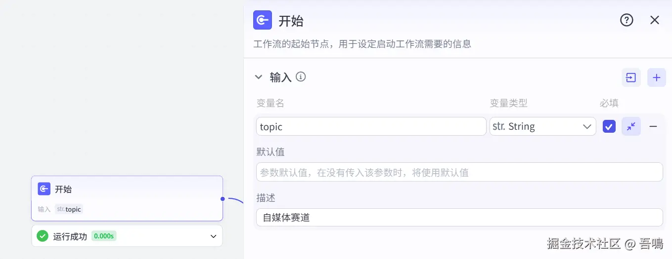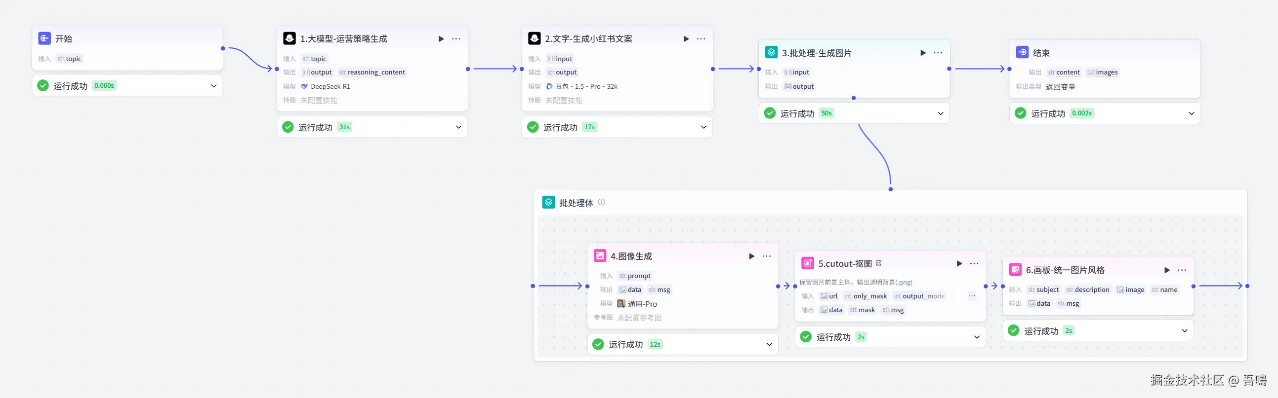 本文要分享一个工作流,接收输入一个自媒体赛道,然后工作流给生成详细的运营策略图文笔记,包括账号定位分析、内容选题测率、爆款视频拆解、拍摄制作技巧、文案撰写要点、平台推荐算法解读、粉丝运营策略、数据分析方法以及变现路径规划等。