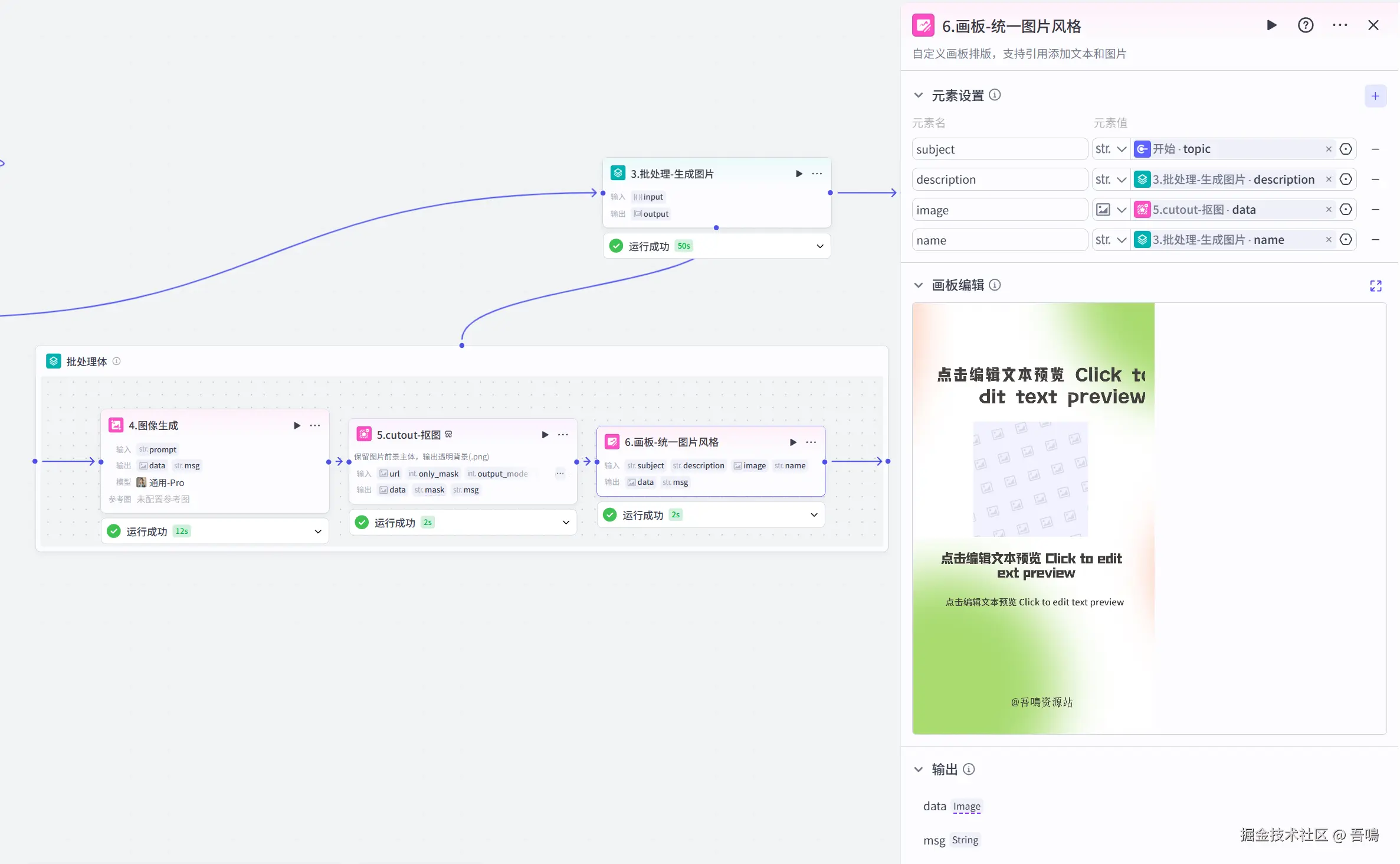 - 功能描述:用于按照运营策略,生成统一风格的图文图片
