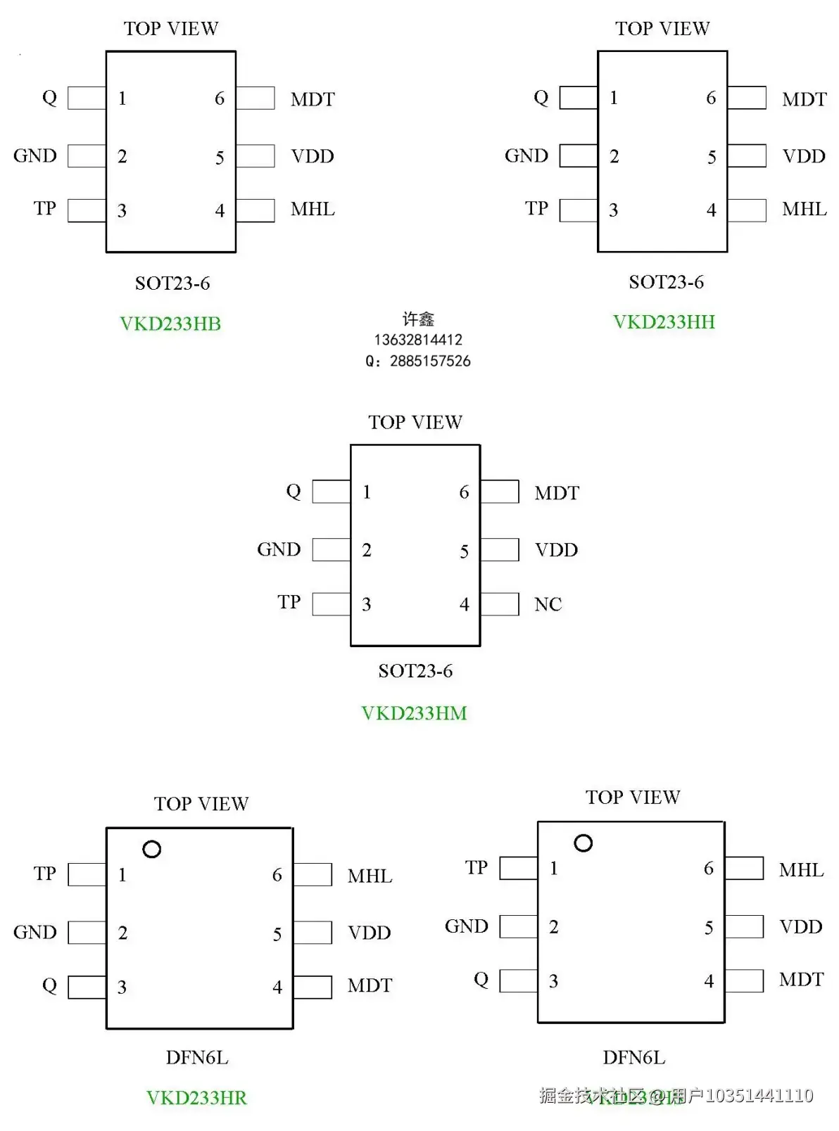 VKD233HH:SOT23-6L(3mm×3mm PP=0.95mm)