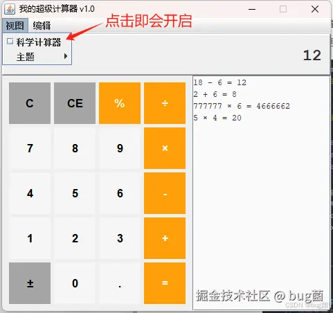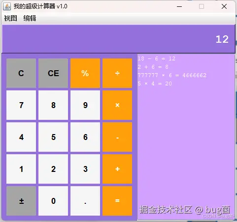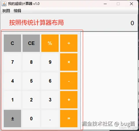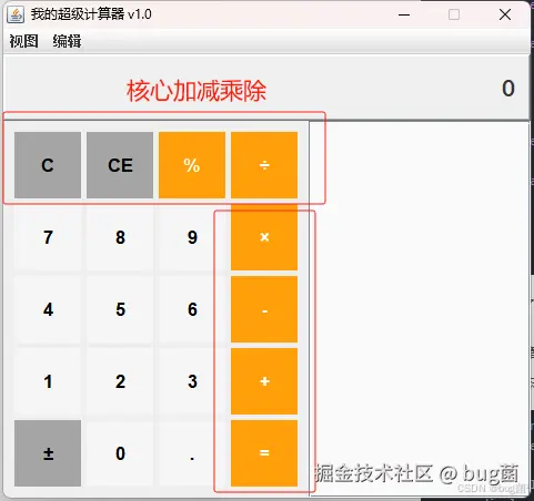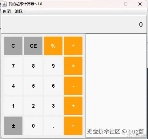如下是正常运行起来的计算器V1.0版本,先给大家过过眼~