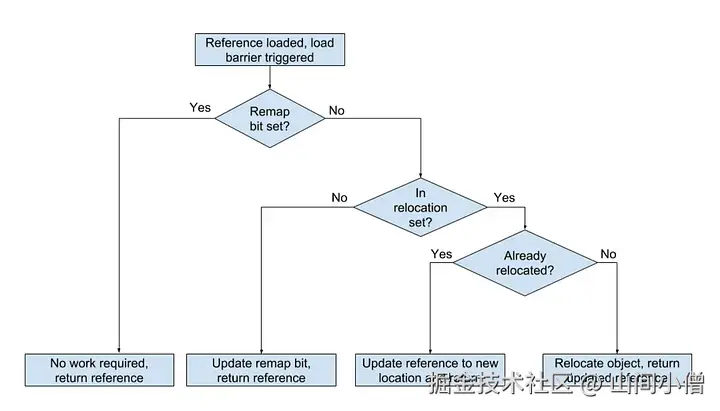 承接上文说的,如果在并发转移(Relocation)的过程中,用户线程访问到了被转移的对象,此时加载屏障(Load Barrier)开始介入,保证引用始终指向有效对象。