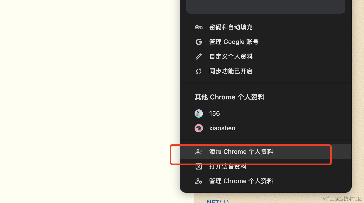 首先我们先点击Chrome右上角头像部分点击添加个人资料: