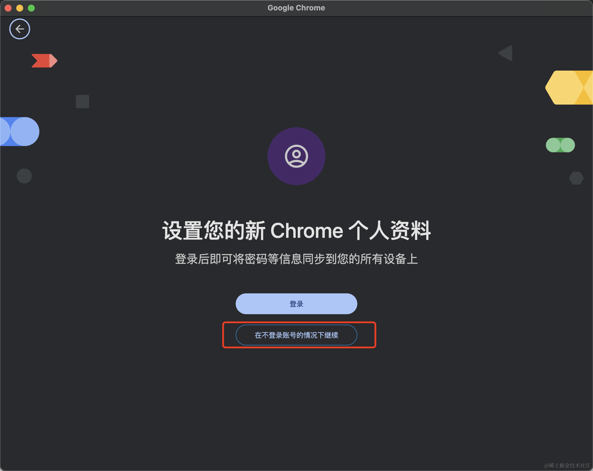 选择在不登陆账号的情况下继续: