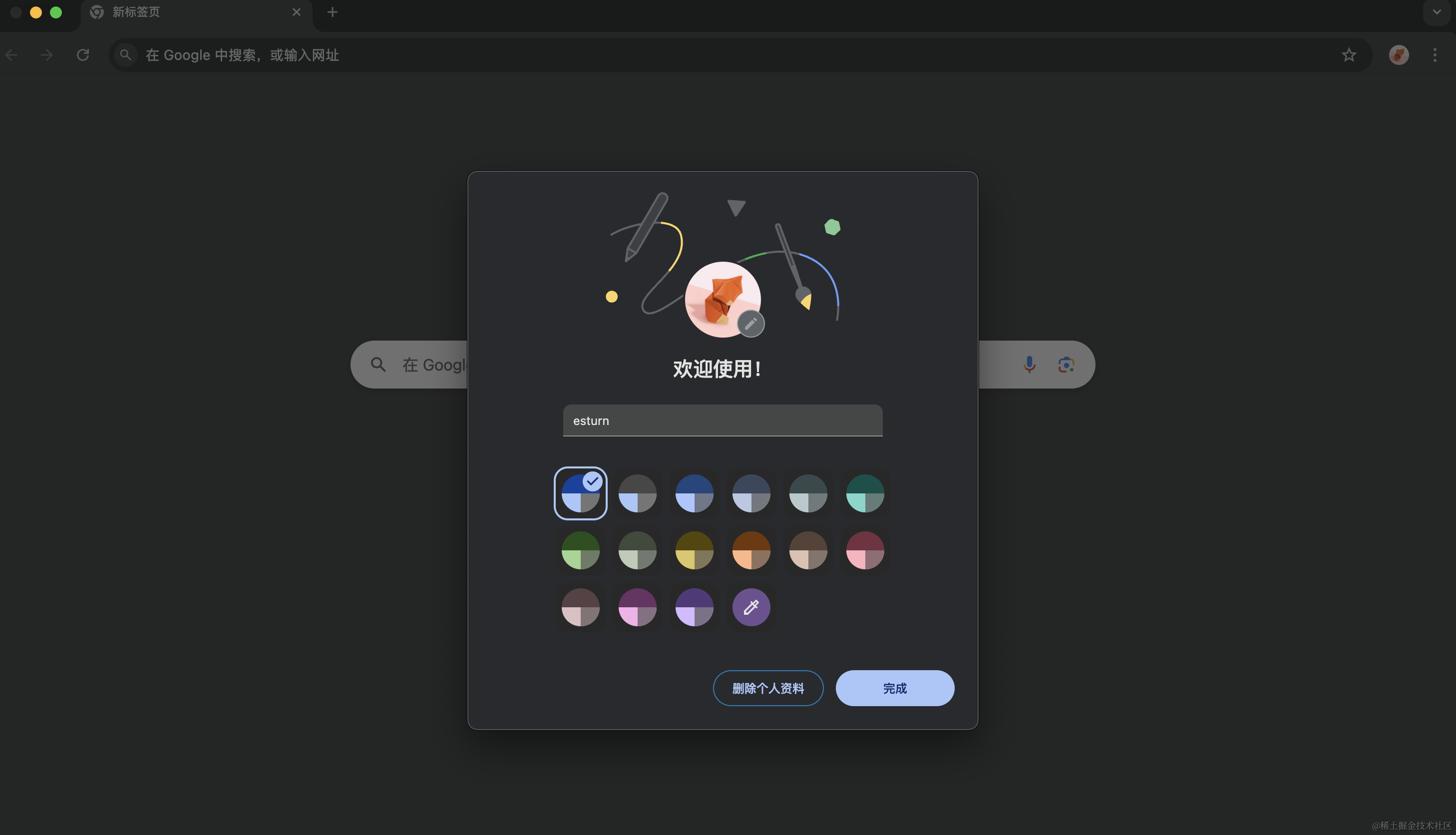 在弹出的窗口中输入新的用户表示名称,也可以更改头像和主题颜色,然后点完成: