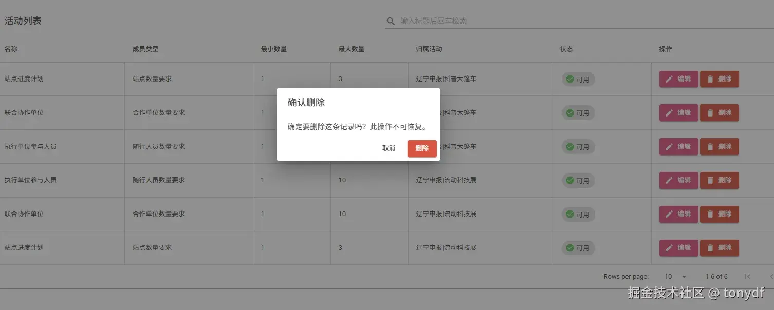 至此,一个功能模块的基本管理功能就完成了,整个过程,的确不需要任何的JavaScript知识,甚至CSS知识也不需要,我这里是使用了MudBlazor,他本身就基于Metarial风格封装了一些样式,然后使用起来和TailwindCSS一样,约定俗成,拿来用就行,这也和那些AntDesgin,TDesign等框架一样。