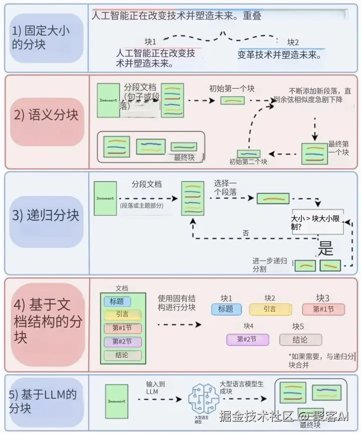 文档分块质量直接影响检索效率,5种方法解决不同场景: