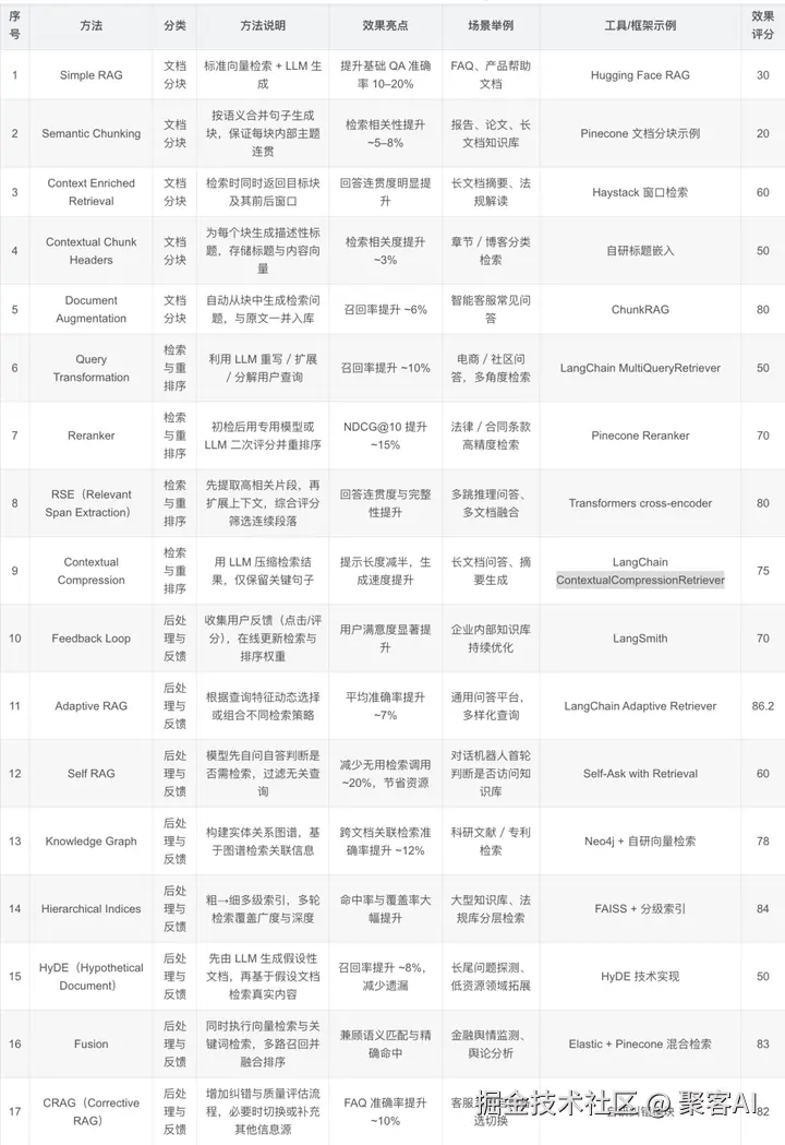 最后我们再总结一下这17种RAG 实现方法的技术原理: