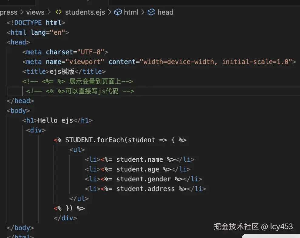 //res.render('students',{name:'sun',age:'18'})//名字和ejs名一致