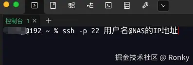 -p:NAS开启SSH的端口号 用户名:NAS设备中的用户名称 IP地址:NAS的局域网IP地址