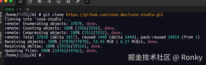 - 下载Coze官方代码(此过程需要去github获取源码,开源地址:github.com/coze-dev/co…)