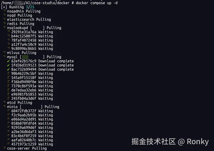 - 执行启动命令 并 等待命令运行结束(设备的配置、网络环境 决定此步骤整体速度)
