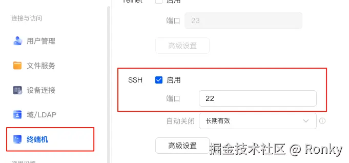 - SSH 访问 : 开启绿联NAS的SSH功能,通过官方的docker部署文件其实也可不开启部署,但本篇文章为了更灵活的部署,采用SSH方式