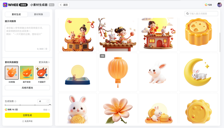 - 可以搜也可以直接生成——与其他文生图或者图生图的炼丹模式不同,站酷素材WHEE小素材生成器,直接用大白话也可以生成,还支持一键AI转换风格,感兴趣的小伙伴可以试一下