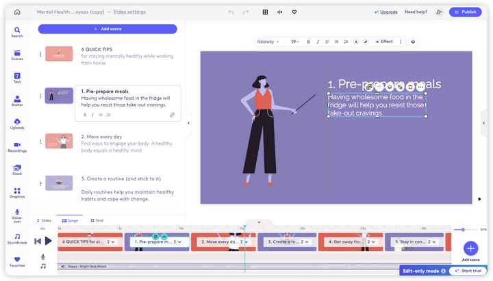 Biteable——解决这个问题的思路是,不会做视频是吧,没关系,总会做PPT吧,什么?也不会!我给你一些模板,你会改文字吧!会改就好办了。用户可以使用可定制模板制作动画视频,内置剪辑和动画来创建高清1080p 分辨率的视觉效果。