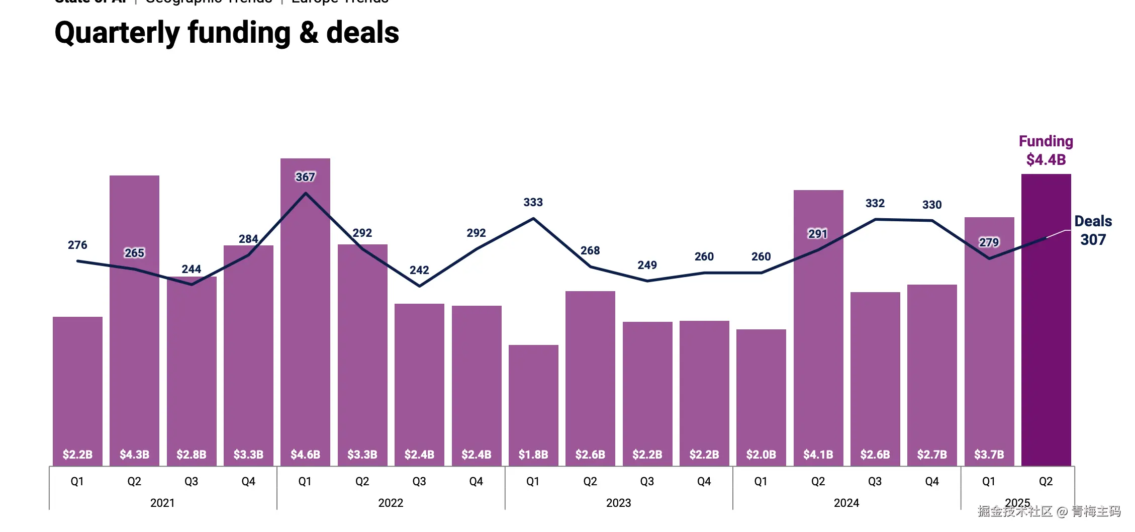 报告指出,2025 年第二季度全球 AI 初创企业融资总额达到 47.3 亿美元,创下历史纪录。这一数字反映了投资者对AI技术的持续信心和市场潜力。以下是投资趋势的关键亮点: