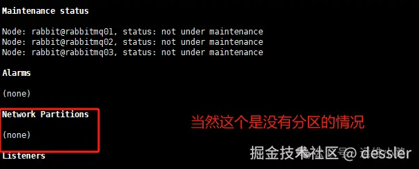 rabbitmqctl cluster_status:较老版本,输出格式不同,但也会包含分区信息。