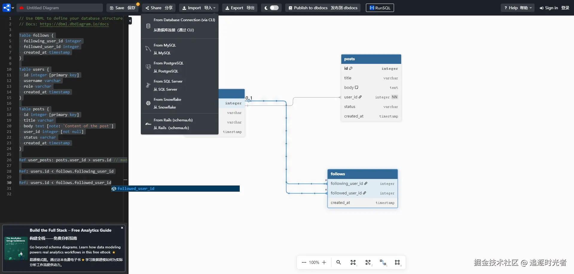 - 在线文档:dbdiagram.io/home