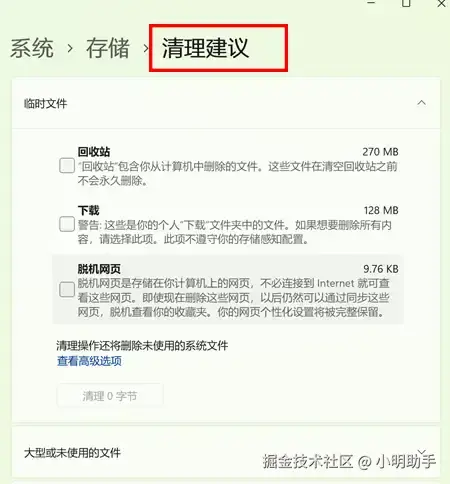 C盘太满了,如何清理?较为保险的是,我们可以在电脑设置中的“存储”板块中找到“清理建议”功能,里面都是电脑自行筛选出来的无用文件,一键清理更为安心。