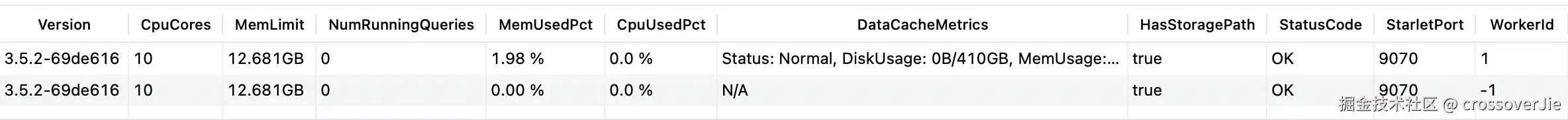 当 CN 和 minio 都启动之后,我们在 FE 里手动绑定这两个 CN 节点: