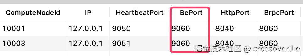workerIpPort 与上一个节点相同(127.0.0.1:9060) 从而导致这个节点被跳过了。