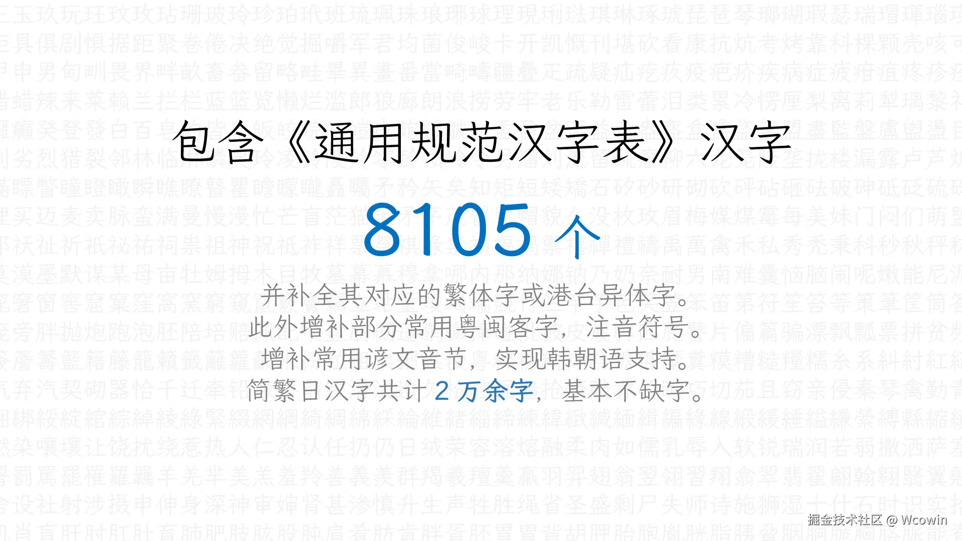 - 截至目前,完整版本字体含有全部 CJK 基本区汉字,以及零星扩展 A~G 区汉字。 如有补字需求,请在 Issue #33 提出,不要另开 Issue,以便于整理。
