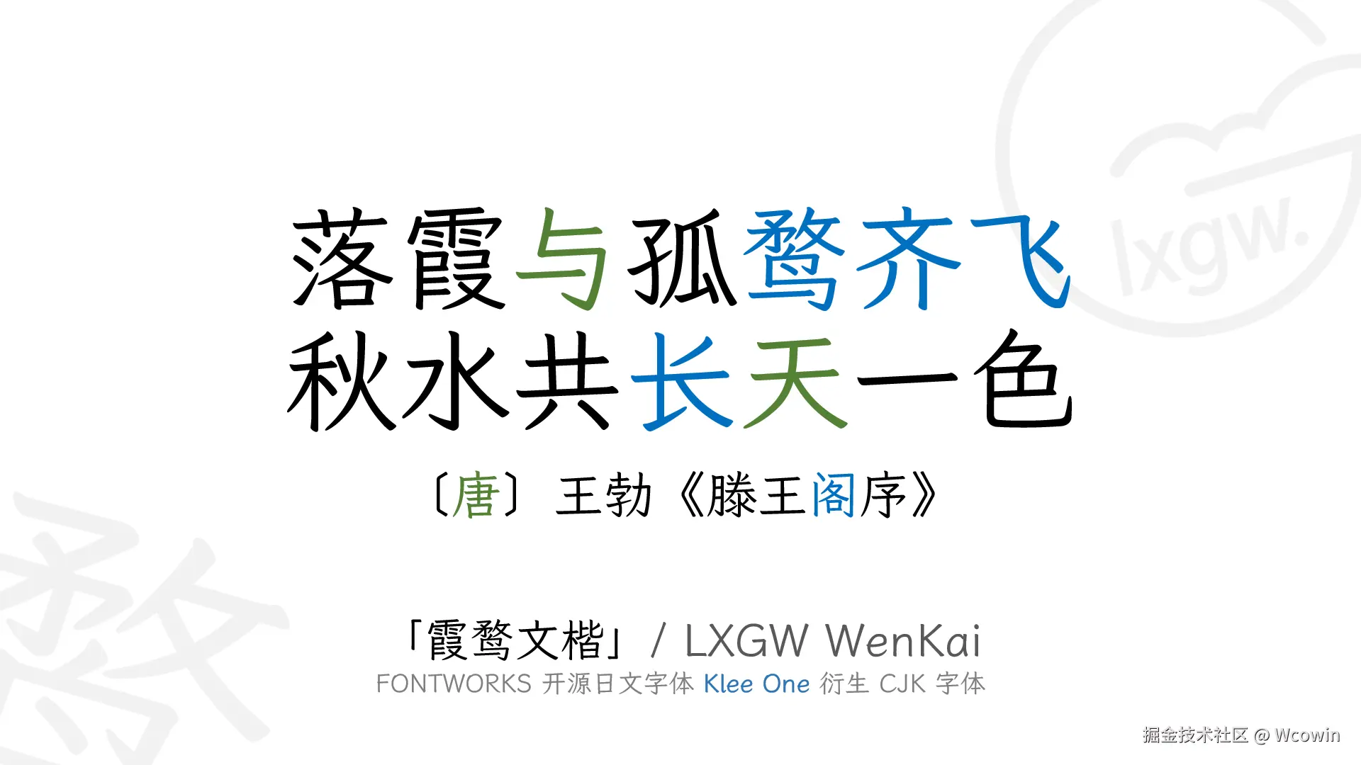 鉴于此,也为了丰富开源中文字体中的楷体门类,2021 年 1 月 20 日起,本人开始了为 Klee One 这一高质量的日文开源字体补全简繁常用字的尝试。因该字体具有一定的「文艺气息」,命名 「霞鹜文楷」(其实当初是感觉这款字体适合正文阅读定名「文楷」,后来发现这款字体可能并不太适合大段正文排版,相比之下更加适合诗词之类的中等长度文本排版,或者注释排版)。由于 Klee One 字体的 Regular 字重太细不太适合阅读,选取原字体 SemiBold 字重作为 Regular 字重。经过长时间的积累,目前已发展成简繁日韩均支持的 3 字重字体家族 (虽然拙劣粗糙了点) 。