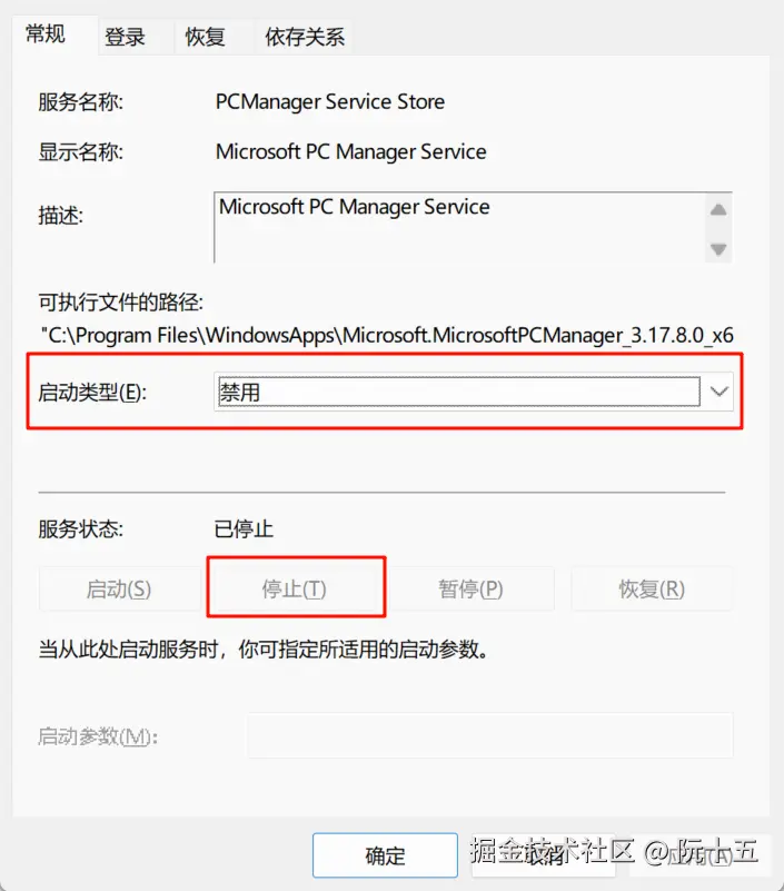 - 在新打开的窗口中点击"停止",并把服务类型改为“禁用”